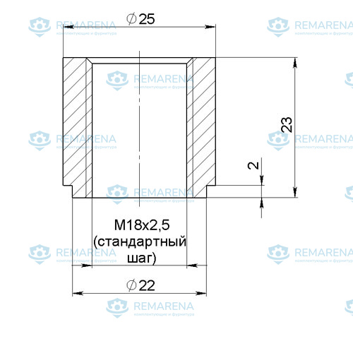 Втулка с внутренней резьбой М18 со стандартным шагом 2,5 мм.