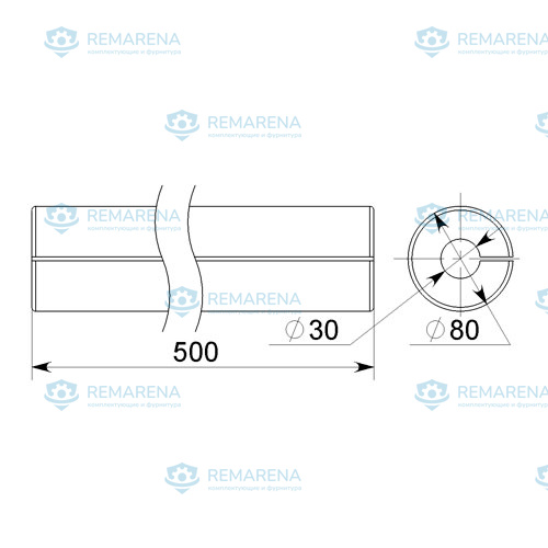Внешний диаметр — 80 мм. Длина 500 мм.