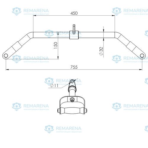 Рукоять позволяет проработать мышцы спины на тросовых тренажерах.