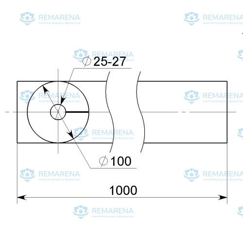 Диаметр внешний — 100 мм, внутренний 25-27 мм, длина 1000 мм.