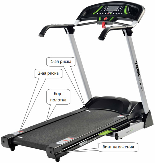 *Важно учитывать, что полотно со временем растягивается. Натяжение полотна осуществляется винтами натяжения. Оцените степень затяжки этих винтов. Если винты полностью утоплены или выкручены (в зависимости от конструкции дорожки) то измеренная длина полотна должна быть уменьшена на 15 – 20 мм.